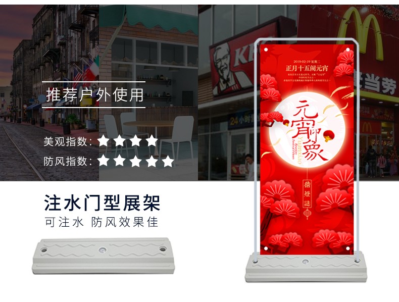 注水门型易拉宝广告牌展示牌户外海报架子落地式印刷设计X展架 加重铁质门型展架60*160(白)