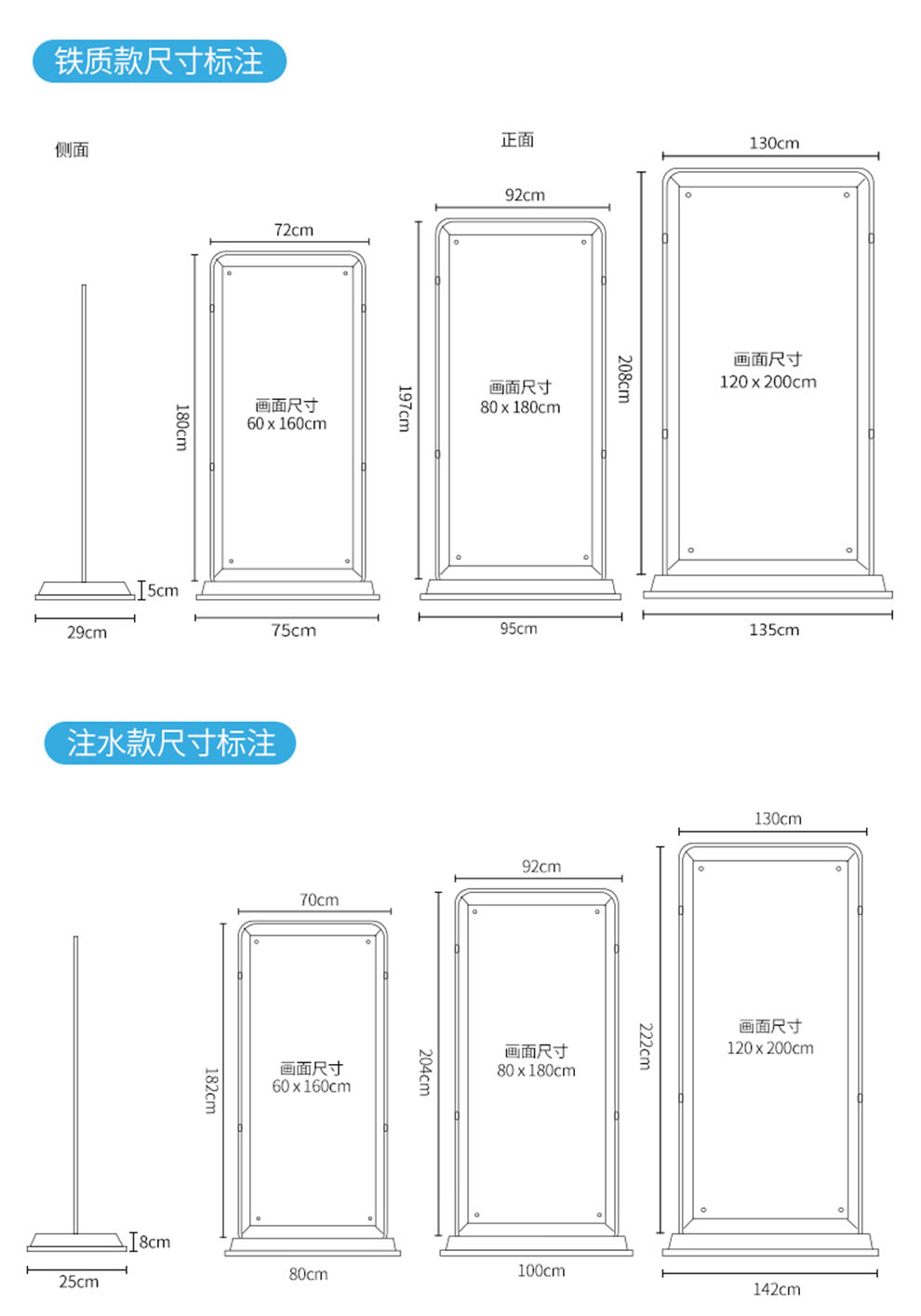 门型展架80x180宣传制作海报印刷广告支架注水易拉宝60*160广告牌展示架立式落地 加厚门型【白色】80x180【仅架子】