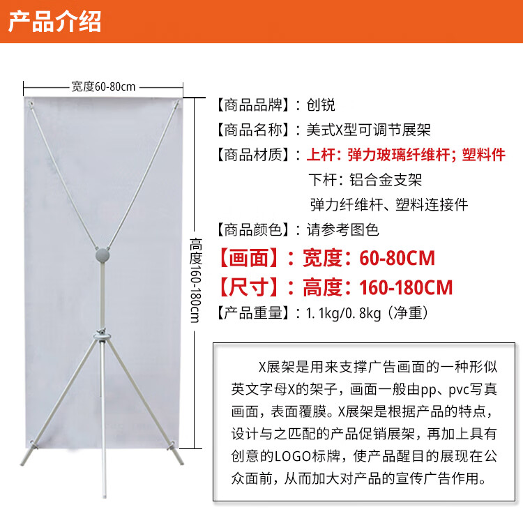 创锐美式可调节X展架 80*180易拉宝 室内结婚海报架 铝合金X展架 80*180cm单展架-室内用
