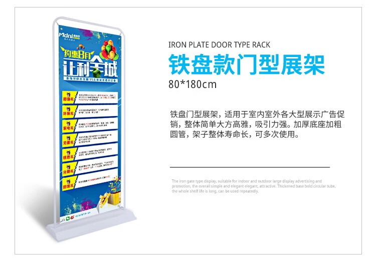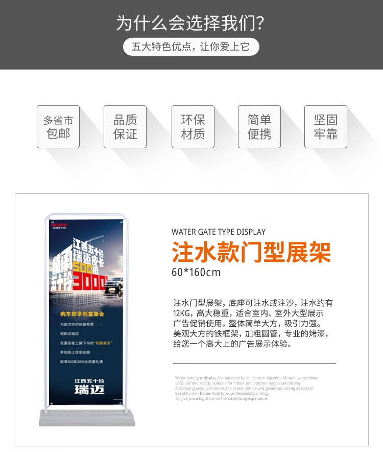 门型展架易拉宝展示架80x180加重铁质门型展架户外展架 注水门型80x180(单展架)