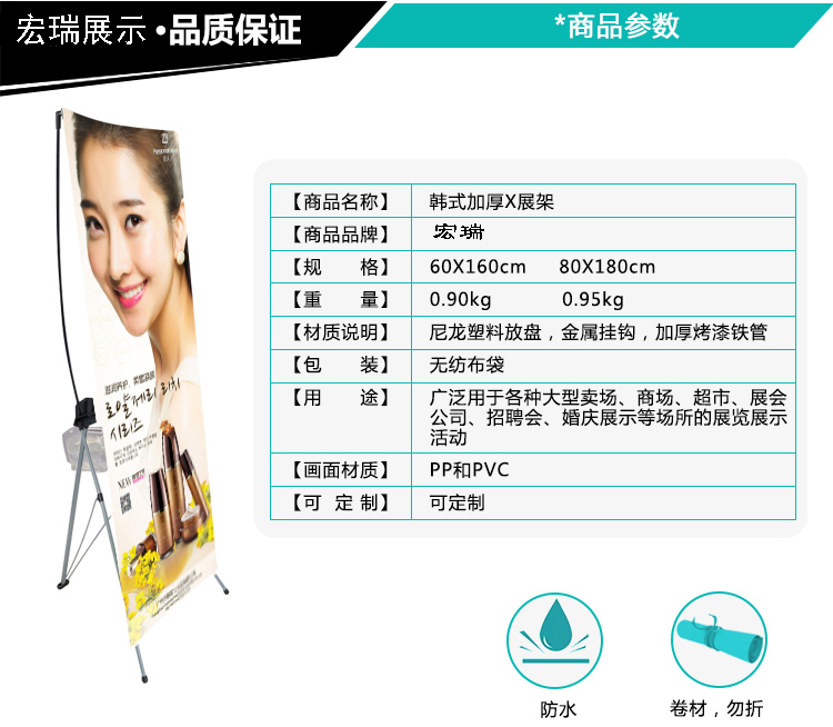 加厚韩式x展架广告展架80X180易拉宝海报架x架海报展示架易拉宝 韩式加厚80*180架子