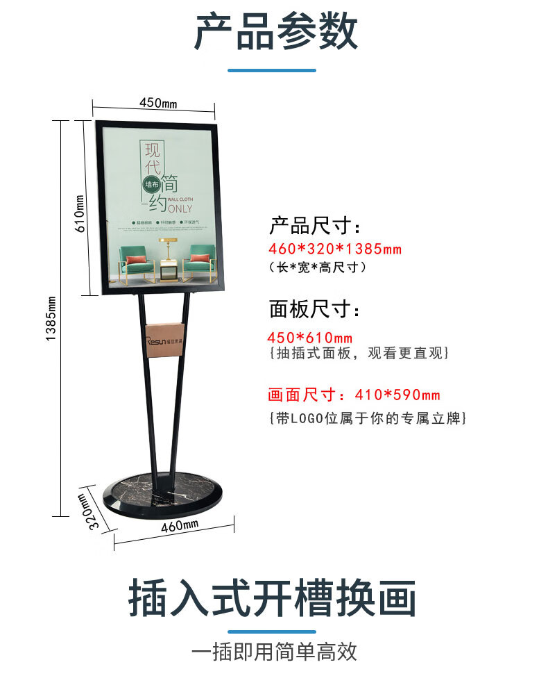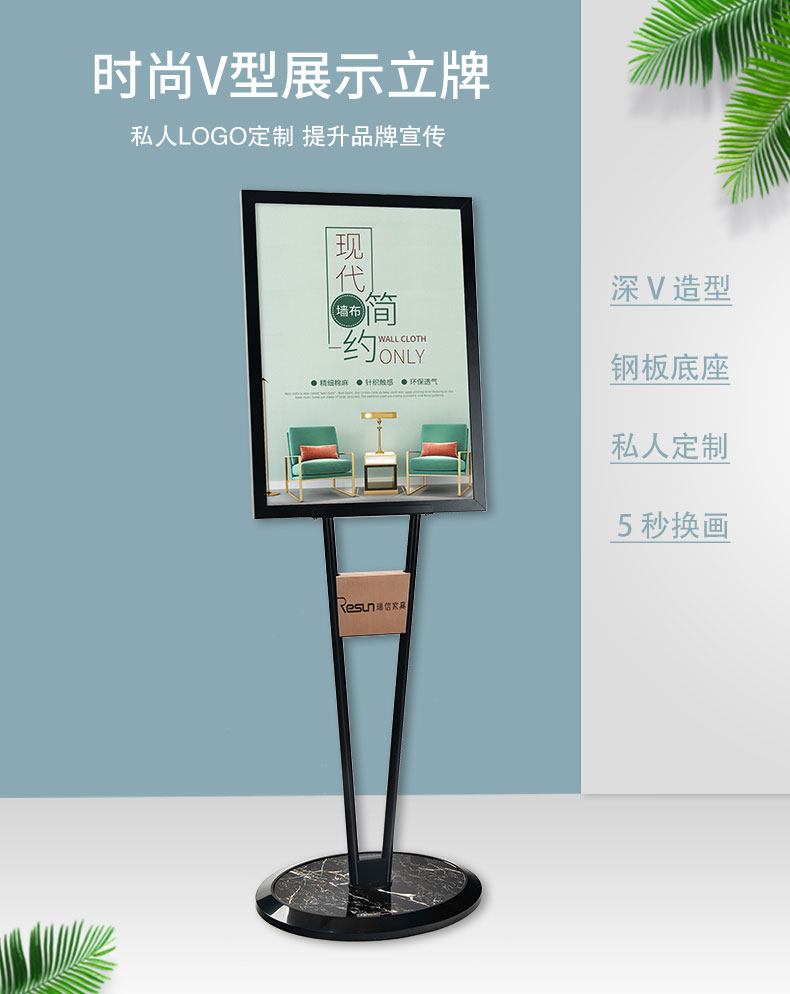 金属V型广告牌海报展示架立式落地招聘引导店门口测温架子商场立牌POP促销牌LOGO定制印刷 V型立牌展架