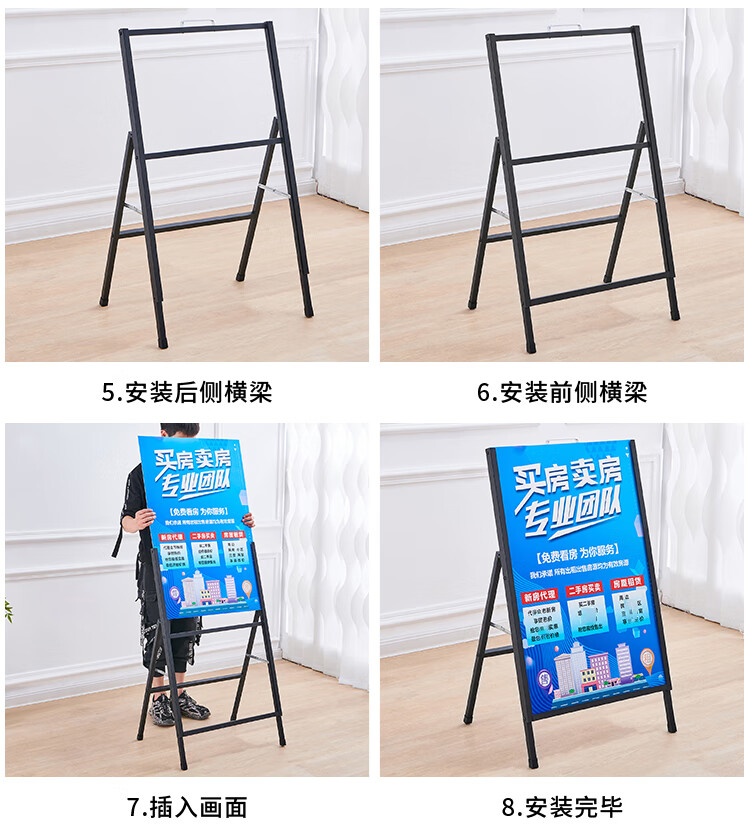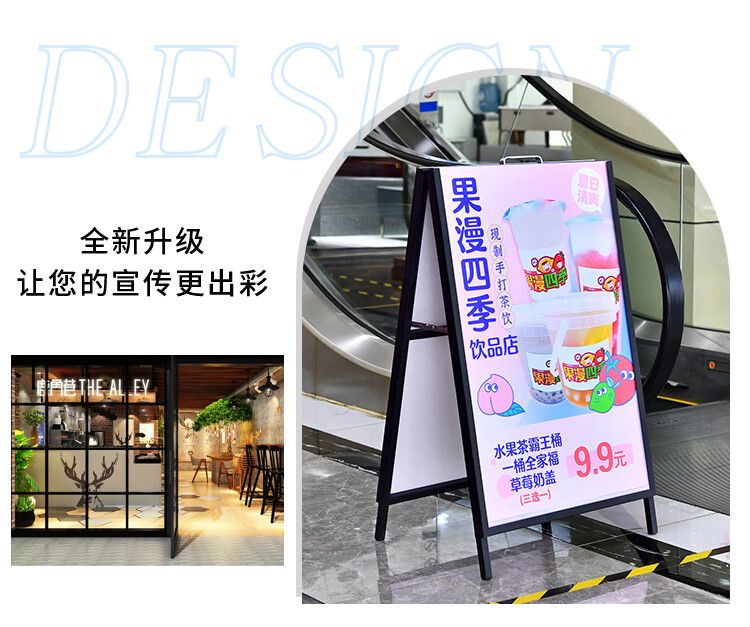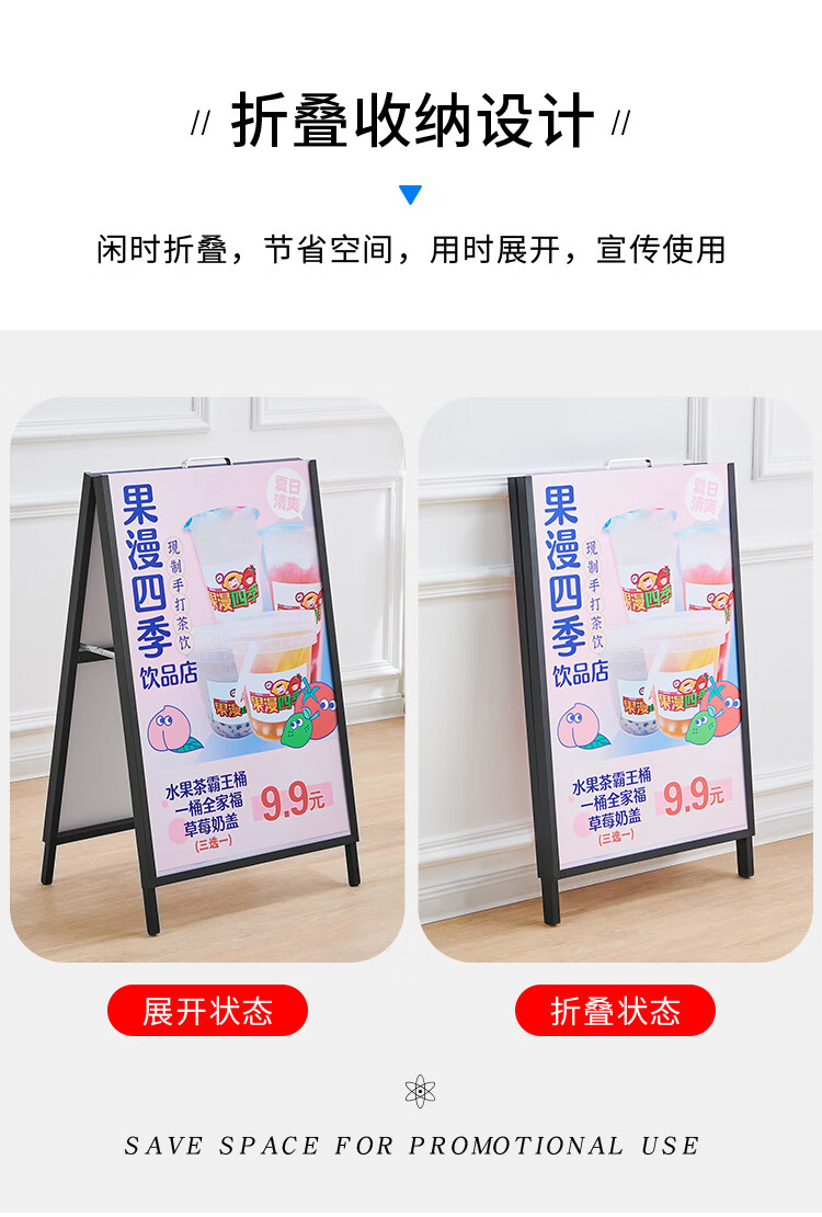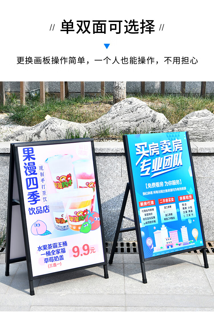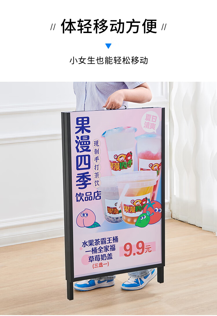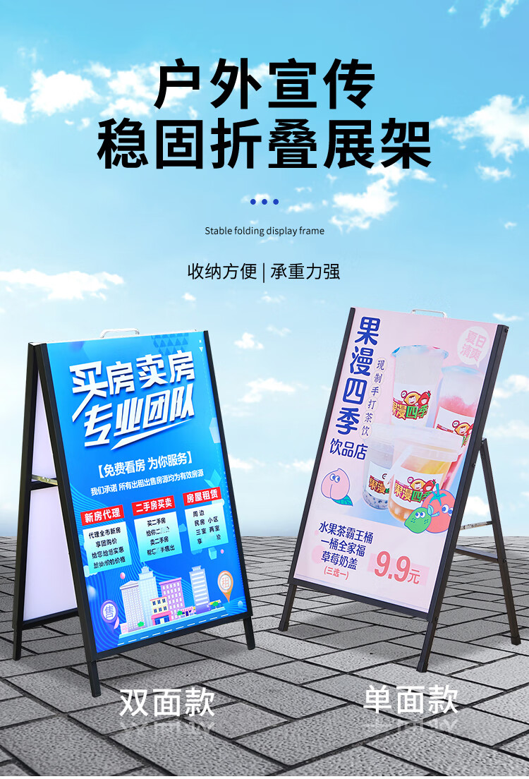 户外广告牌展示牌kt板落地式立式展架招聘奶茶门店宣传立牌海报架 组装款单面手提60*90单架子