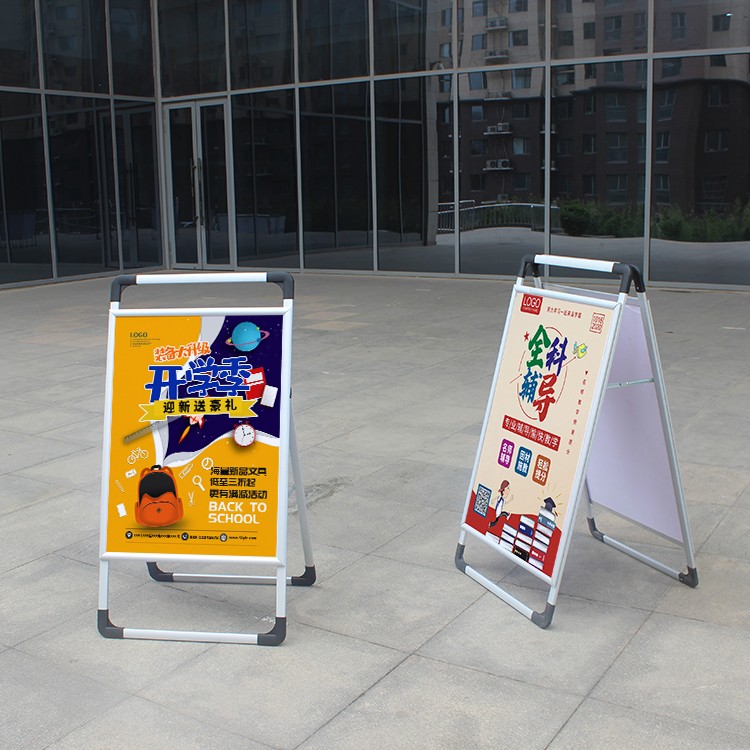 广告牌手提海报架展示架人字板a型展架落地立式铝合金KT板宣传支架双面广告立牌便携可折叠 单面60*80支架(不含板)
