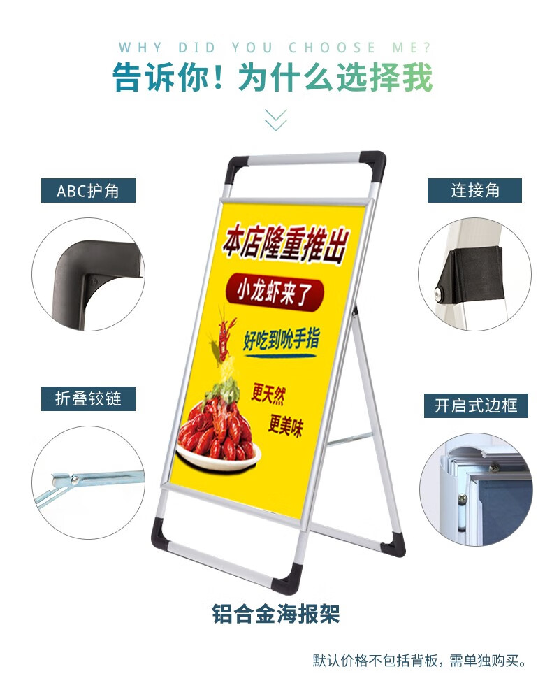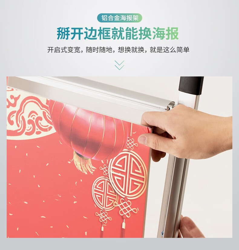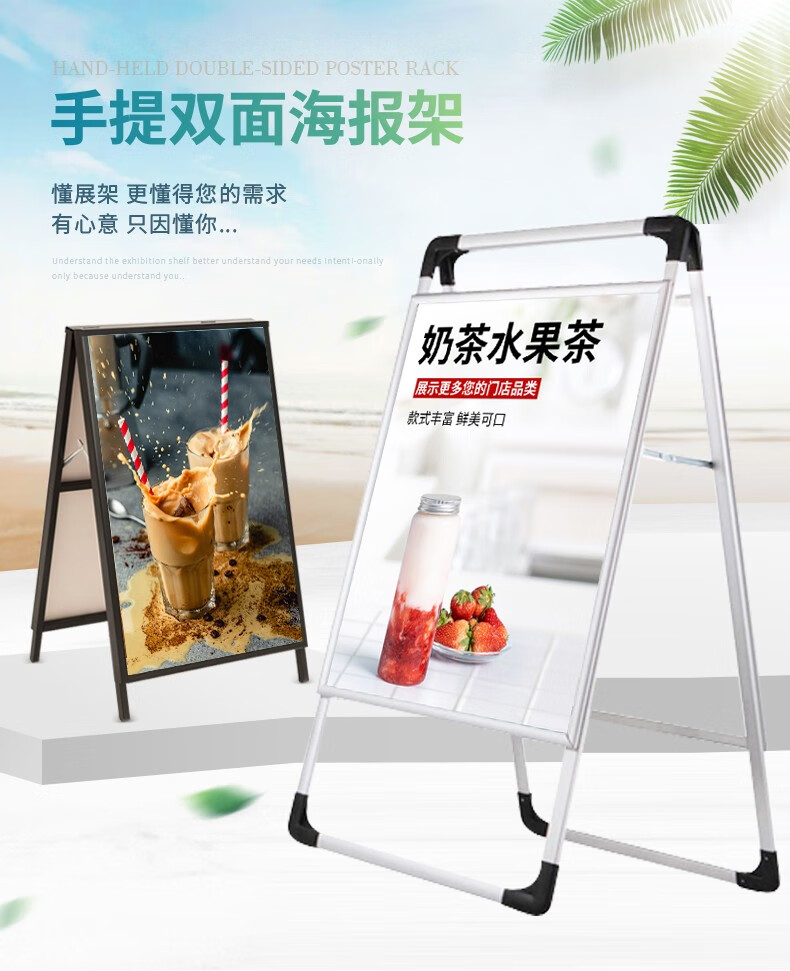 手提海报架铝合金双面广告架kt板展架便携立式广告架开启式展架 单面60*90cm-不含背板
