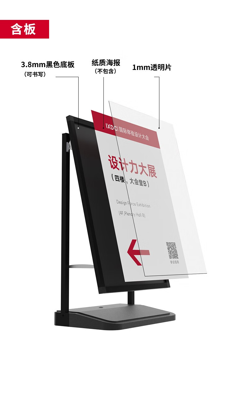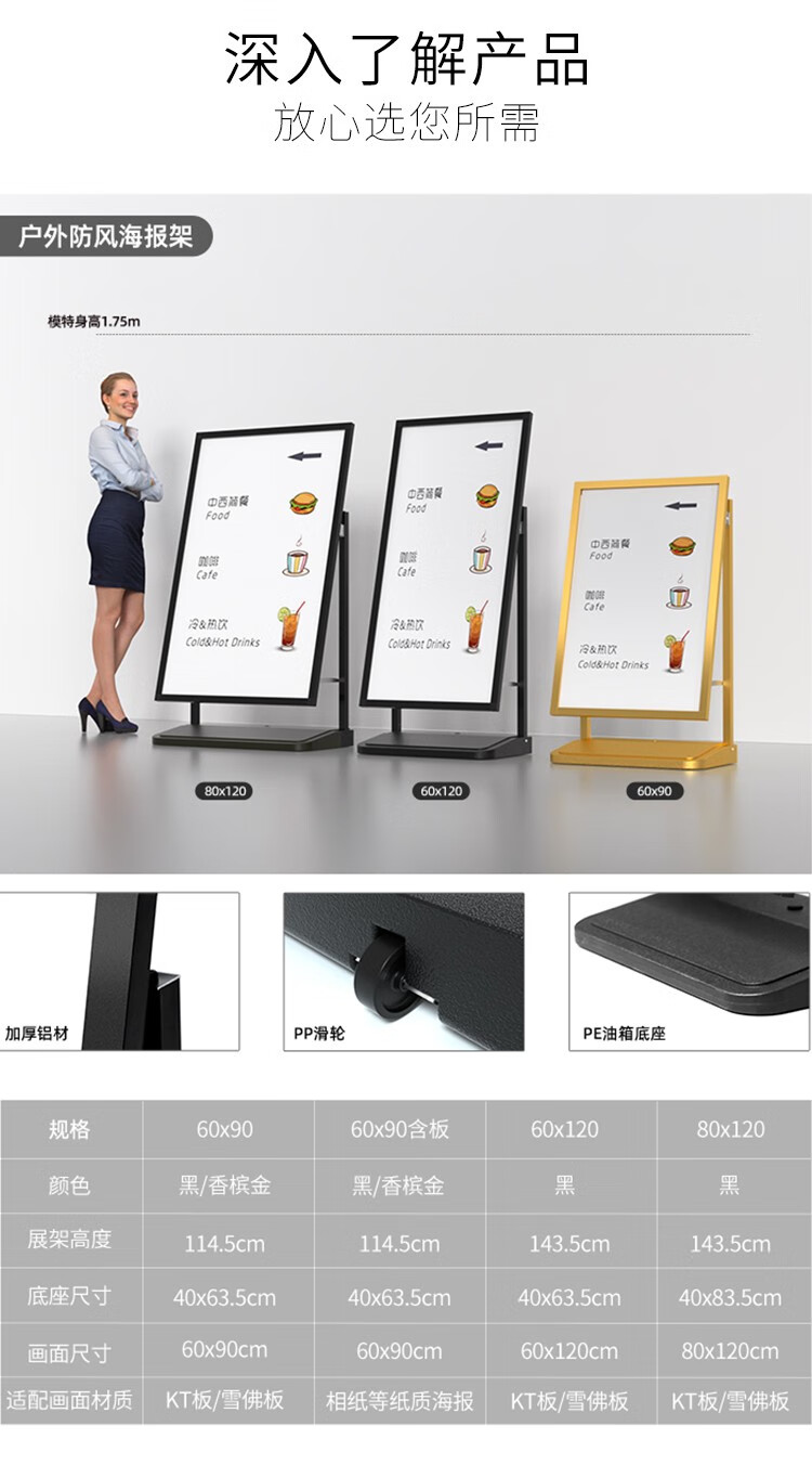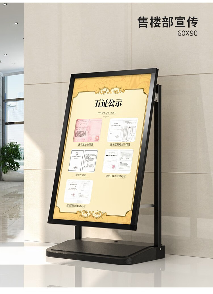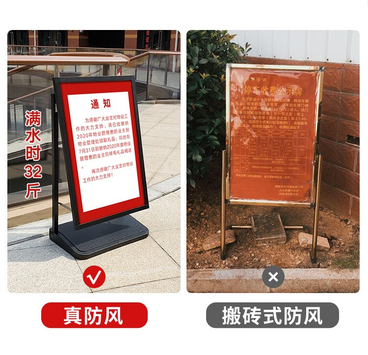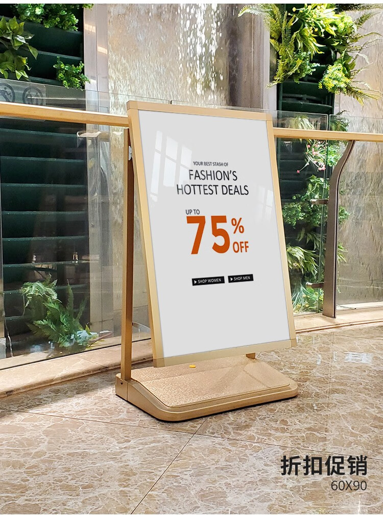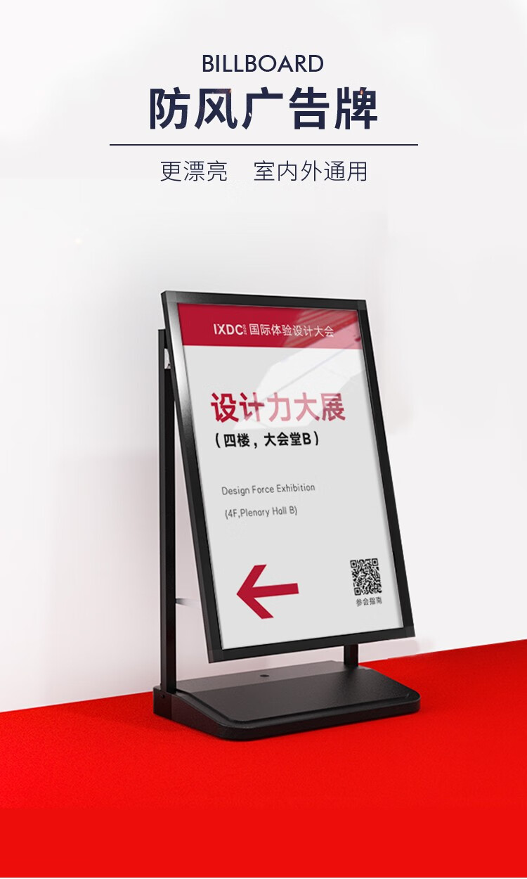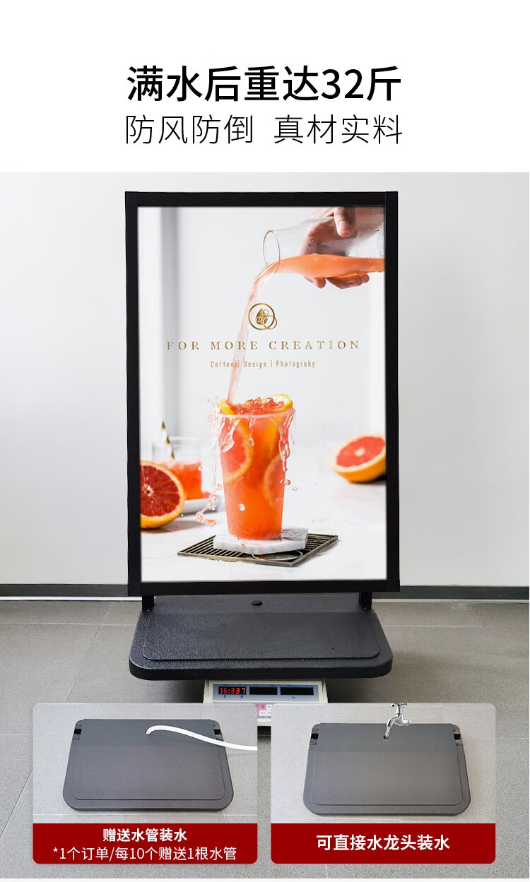 户外海报架防风广告牌门口水牌注水广告架展示架立式落地式展架子 黑色80*120cm【不含板】
