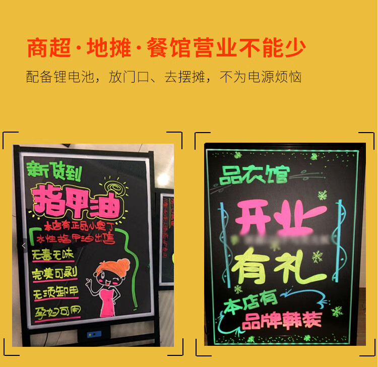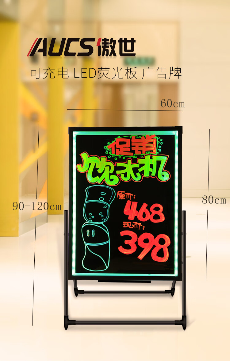 电子荧光板广告板led发光字广告牌展示架黑板支架型充电款商用户外招牌摆摊夜市手写荧光屏