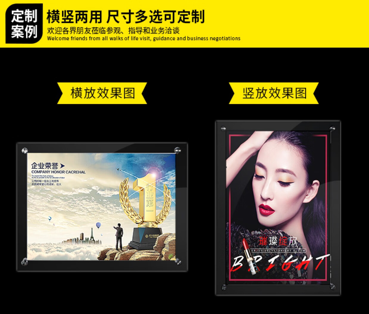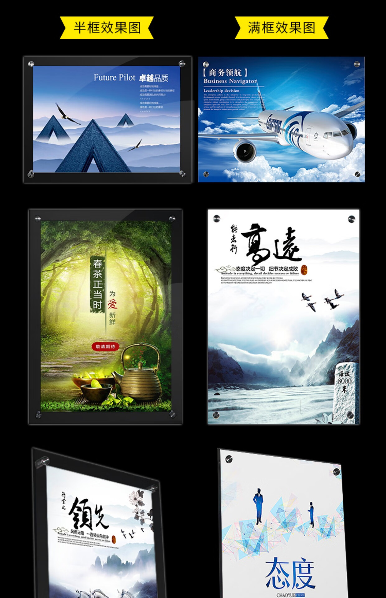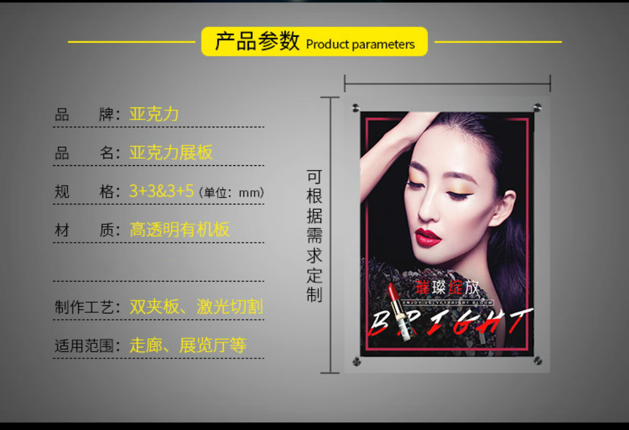 高透明亚克力广告板有机玻璃展板双层夹板夹框画框展示制度牌挂墙