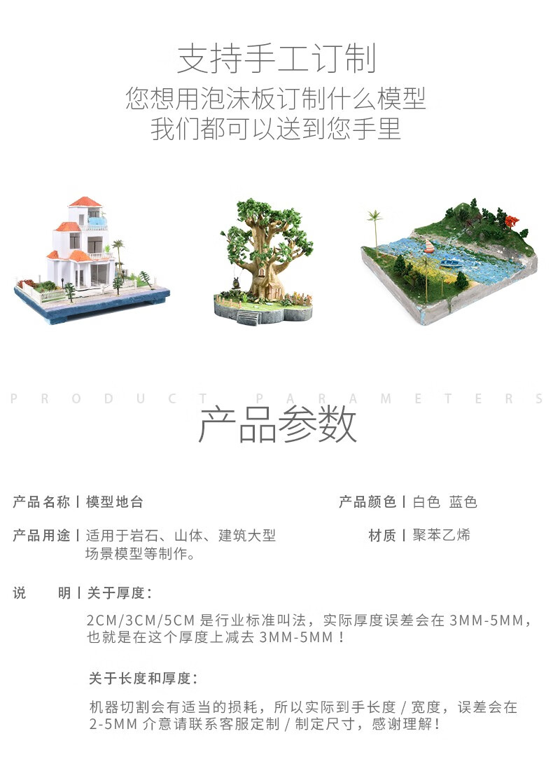 高密度泡沫板kt板模型手工diy场景制作材料雕刻切割泡沫底板特硬 白色40*60*2cm 1张